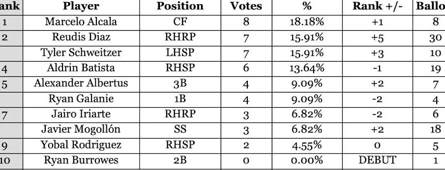 Ruedis Diaz, primarily a center fielder, stands for an expanding close friend of impressive abilities, and the ballot showcased a budget friendly ambience, revealed by the close margins in between Tyler Schweitzer, Jairo Iriarte, and On, among others.