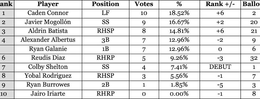 Caden Connor Increases to Leading in Last Prospect Voting