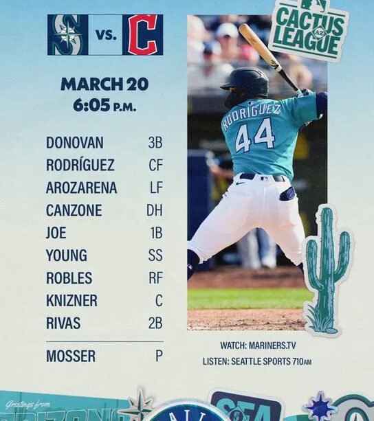 As the Cactus Organization take a break, the Seattle Mariners plan for their last stretch of occasion computer game with just 3 remaining to be, completing in an awesome competitors versus the Cleveland Guardians this mid-day. The Mariners prepare to run into the Guardians again in their duration opener on Thursday, yet tonight’s competitors consists of a various throwing suit that does not contain expected novices Logan Gilbert orTanner Bibee