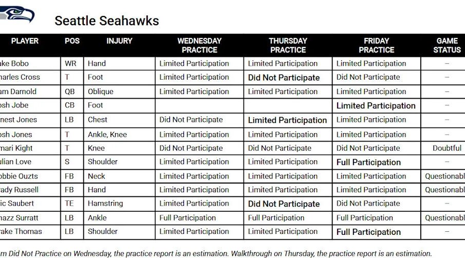 Super Dish injury upgrade: Seahawks listing 3 players uncertain for complying with week