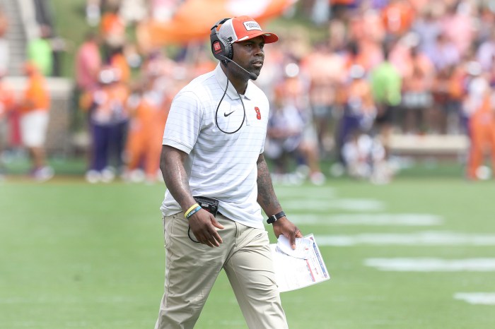 Syracuse head coach Fran Brown looks on during a game against Clemson on Sept. 20 at Clemson Memorial Stadium in Clemson, S.C.
