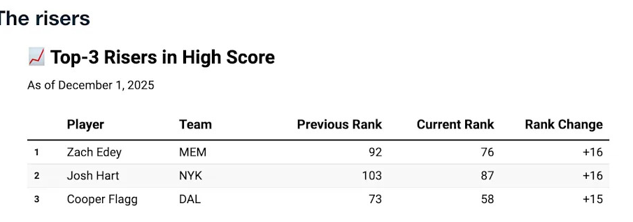 High Score 100 Update: Risers and Fallers in Week 6 of Fantasy Basketball